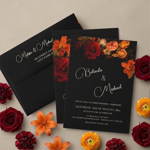 Floral Noir Wedding Inbjudningar