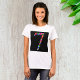 Show off your love for floral style with this women’s T-shirt featuring a vibrant number 7 design made of colorful flowers. Set against a striking black background, the detailed botanical artwork adds a bold and feminine touch. Perfect for casual wear, birthday celebrations, or anyone who considers seven their lucky number, this tee combines comfort with standout design.