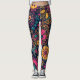 Floral Paisley Pattern with pink yellow and blue paisley pattern flowers on a dark blue background leggings.