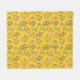 Seamless floral pattern with delicate branches, blue-green leaves, and pink buds on a vibrant yellow background, creating a cheerful, lively tone.