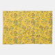 Seamless floral pattern with delicate branches, blue-green leaves, and pink buds on a vibrant yellow background, creating a cheerful, lively tone.