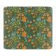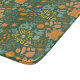 Seamless floral pattern on a dark green background featuring stylized orange, yellow, and teal flowers, leaves, and abstract shapes.