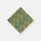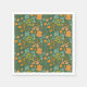 Seamless floral pattern on a dark green background featuring stylized orange, yellow, and teal flowers, leaves, and abstract shapes.