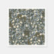 Seamless pattern wallpaper featuring dark green foliage and small white blossoms against a dusty blue-gray background.