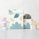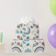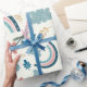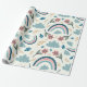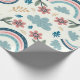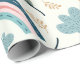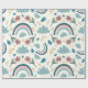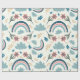 A cheerful floral pattern featuring rainbows and cloud shapes in soft pastel tones, ideal for cute and joyful wrapping paper designs.