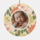 Celebrate life’s tender moments with this ceramic keepsake ornament featuring the inspirational message “Joyful Moments, Thankful Heart” on one side and space for a treasured photo on the other. Surrounded by soft florals in peach, pink, and green, this ornament is perfect for commemorating milestones, honoring loved ones, or simply spreading joy.