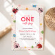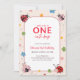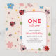 Floral Red Pink One Cute Bug Ladybug 1st Birthday Inbjudningar