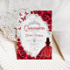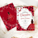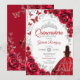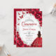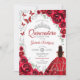 Red silver and white floral Quinceanera celebration invitation. Features brunette girl in ball gown dress, script font, silver butterflies, watercolor roses and tiara. Perfect for an elegant princess style glam celebration. Personalize with your own details. Printed Zazzle invitations or instant download digital printable template.