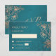 Floral Rose Gold Teal Wedding RSVP OSA Kort