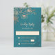 Floral Rose Gold Teal Wedding RSVP OSA Kort