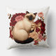 Floral Serenity: Curled Siamese Cat in Bloom Kudde