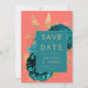 Floral Teal Coral Gold Wedding Save the Date Inbjudningar