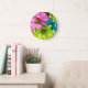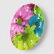 Floral Wall Clock – Pink Green Blue Flower Stor Klocka
