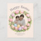 Floral Wreath & Family Photo Personalized Easter Helg Vykort