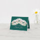 Beautiful wreath of white orchids with tinges of pink and yellow against a turquoise-green color background. The greeting text uses an attractive script typography font. The flowers cover the front of this card which can be used as a thank you card, a birthday card, or any other card of your choice. Personalize it with your text and/or pictures to make it one-of-a-kind!