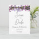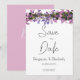 Elegant land chic rosa, lavender, lavender och grönt blommigt Bröllop spara datum inbjudan. Denna vackra inbjudan till vattenblommor är perfekt för alla klassofistikerade och sofistikerade glam-flickor. Den här designen är perfekt för en händelse i trendig och snyggt party. Anpassa den här designen med egen information om meddelande och personlig. Alla designer skrivs ut.