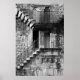 Svart och vitt foto av gammalt trapphus i Florens, Italien