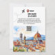 En vanlig, enkel, modern men ändå elegant fotomall har två vattenfärger i bilder, en i Florens stad och den andra i Ponte Vecchio i Italien. På baksidan finns en större vattenfärgsmålning av Florens under text och en QR-kodmall. Lägg till fotot med speciell möhippa par längst fram och anpassa mallarna till kostym behov. Både fram och bak har ett litet flygplan med en prickad linje bakom och visar sitt flyg väg och baksidan en platssymbol för namn i den stad eller stad som du kommer att fira bröllop-medborgare på.