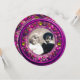 Elegant, klassisk, livfull renässanskonst, mästerverk från Bottega della Robbia (Florens - Italien). Klassisk rund/cirkelformad fotomall för inbjudan i gult, svart, lila, rosa, fuchsia, violetta färger med ljusa 3D gula topas ädelstenar som lätt kan anpassas med din text och initialer Konstnärlig och cool design, lätt att anpassa som bröllopsceremoni, vigselmeddelande, platskort, save-the-date-kort, tackkort, baby shower, bröllops shower, Sweet 16, Quinceanera födelsedagsfirande, Bat Mitzvah, romantiska förlovningsfiranden, jul, högtid, kontor, familjeåterträffar, nyårsfirande, årsdagar, sammankomster, skolavslut