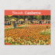 Travel print of Floriade in Canberra Australia. En livlig blomfestival med tulpaner och Vår blommor i ett modernt, färgfyllt stil av resekonst. Färgämnen och roligt i Canberra, Australien.