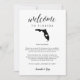ett välkomstmeddelande till dina gäster i Florida bröllop samt en färdväg eller ett schema över händelserna i helg. Framsidan har ditt välkomstmeddelande med en silhouette karta i delstaten Florida med ett hjärta inuti. Anpassa den omvända sidan med bröllopsdagen eller bröllop helg. Perfekt för att ta med välkomstpåsar på hotell eller leverera till gästernas rum.
