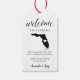 ett välkomstmeddelande till era gäster i Florida bröllop med dessa märkre för chic som är perfekt att fästa vid era välkomstpåsar i bröllop. Utformningen innehåller ditt välkomstmeddelande i svart skrift med en silhuett karta i delstaten Florida med ett hjärta inuti.