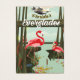 Florida Everglades-tecknadens reseaffisch med landskapet och flamingosfåglarna.