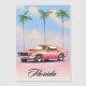 Florida Rosa Sunset-reseaffisch med en retro american-muskelbil mot kvällssolnedgång.