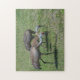 Florida Sandhill Cranes Walking in Grönt Fält Pussel