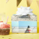 Denna snögubbe smyckas med en top hat och besökas av en fågel och en älva (fast han inte är på en hylla - han är på en stege),