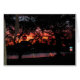 Solnedgången över yachthandfatet i Portosueno parkerar, Bradenton, Florida. Röda och orange himmlar på skymningen, till och med oak- och banyanträd.
