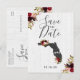 Florida State Bröllopsdestination Rustik Country Chic med White Barn Wood & Marsala Burgundy Watercolor Blommiga Arrangemang & Boho Fjädrar Bröllop Spara Datum Postkort Med trendig Handskriven Script font! ~ Kolla min butik för att se hela bröllopssamlingen med denna design!