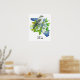 A poster decorated with mockingbird on a tree filled with orange blossoms on the state shape hand illustrated with ink and watercolor. Inspired by the state bird and state flower of Florida. Great souvenir and home decor of the Sunshine State!