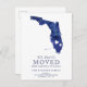 skicka din nya adress till vänner och familj med denna moderna marinblå akvarellkarta över delstaten Florida med modern typografi. Perfekt flyttkort. Flytta hjärtat till din nya plats.