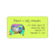 Camping themed returetiketters. Ljusa chartreuse-etiketter med en söt silver-resande släpvagnsbild och tropisk flamingos bredvid ljusa vattensköar. Namn, eller namn, går överst med mindre utskriven höger som är justerad för adress. Använda 2-5 linjer för adress vid behov.