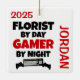 Detta prydnadsämne med citatet "Florist by Day Gamer by Night" är perfekt för all florist som kärlek spelar videospel.