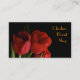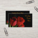 Det här blommigt affärskortet annonserar ut en floristhandlare med en bukett av röda tulpaner och löv av grönt som ställs in på en rent svart bakgrund. All text kan anpassas för att passa din egen personliga verksamhet.