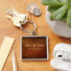 Flott äkta läderformgivare fyrkantig silverfärgad nyckelring