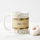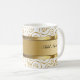Monogramkaffe koppar planlägger skapat med eleganta designinslag för guld och för vit och görar mellanslag dig kan personifiera med någon namn eller initialer. Designat för manar eller kvinnor, denna moderna design gör detta en uoscalekopp för kaffe, tea, för kontoret eller hemmet.