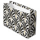 Den flott gåvan hänger lös med en svart, en vit och ett guld- fläktmönster som inspireras vid 20-taleraen.