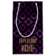 Djupt - lilan gör en sofistikerad bakgrund för den svart mönster- och guldtexten. Den är flott med stil. Den mycket minnesvärda födelsedaggåvan hänger lös.