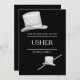 Detta är en 5" x 7" flott och eleganten "din, tjänste- som en rättstjänare är det krävda" inbjudankortet. Om du tittar för att fråga någon att vara din rättstjänare för ditt framtida bröllop, då därför att inte välja detta enkla yet eleganta kort. Detta skräddarsy ska inbjudankort gör din vän, brodern, kusinen, brorsonen, son, eller vem som som är andra väljer du, känselförnimmelsen den extra sakkunnig! Med att bedöva utskrivaven bilder av en silvertop hat och en mindre top hat med en matcha käpp. Mycket stilfullt och elegant för ett viktigt beslut. Denna inbjudan personifieras lätt, genom att klicka på skräddarsy som den knäppas under avbilda, var du ska är kompetent att ändra texten, stilsorten och formatet. Du kan invitera dina bäst kompisar i stil med dessa flott inbjudningar. Det är passande för ringbärare. Om du skulle lik hjälp för att skräddarsy din produkt behar kontaktar mig till och med mitt lager och, jag ska är lycklig att hjälpa dig.