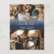 Elegant Blått vykort för bröllop spara datum med modern kalligrafi.
