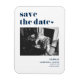 Spara datumet! Meddela din bröllop-dejt till familj och vänner med marinblått och vitt spara datumfotomagnet. Den har marin blå fet typografi. Anpassa genom att lägga till foto, namn, datum och annan information. Det här moderna fotot spara datum magneter finns i olika färg och kartonger.