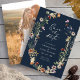 Foto Boho för marin Elegant sparar datumet. Den här eleganten och snyggtens spara-till-datum-anslagskort innehåller fantastiska, handmålade vilda blommor med vattenfärg som ordnats som en underbar krans och ett förlovning på baksidan som är perfekt för vår, sommar eller fallbröllop. Sök efter matchande objekt i samlingen Navy Blue Boho Wildblomma Bröllop.