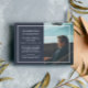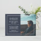 Begravningsblå inbjudan med vit information och klassisk typsnitt. Lägg till ett foto av din älskade i högerna.