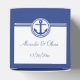 Anpassa en unik förmånslåda för bröllop för gäster med den här unika favoritlådan för marinblå navigationsankare. Favoritrutans design har ett marint blått gräns med motsvarande nautiska ankarpunkt. Anpassa till namn i brudgummen och till bröllop-datumet. Ytterligare bröllop-förråd finns även med den här utformningen. Behöver du hjälp med anpassning? Kontakta mig och jag kommer att utarbeta formuleringarna och detaljerna så att de passar in i denna utformning till er belåtenhet.