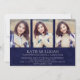 Elegantens marinblå sammet 4-foto- eller högskoleklass 2022-studentfestens inbjudan. Lägg till 3 foton längst fram och 1 längst bak. Anpassa med ditt namn, namn, studenten och grad party.