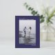 Det här Spara datumkortet är enkelt, modernt, minimalistiskt och klassligt. Det innehåller ett foto som är orienterat mot lodrät eller porträtt på en marin blå bakgrund med namn, bröllop-datum och -plats och titeln "Spara datum" är placerad symmetriskt ovanför och nedanför bild. Artsy och sofistikerad, det här kortet är ett underbart sätt att informera din familj och dina vänner om ditt kommande bröllop.