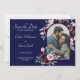 Flottblått och Burgundy Blommigt Photo Bröllop Spara Datumet